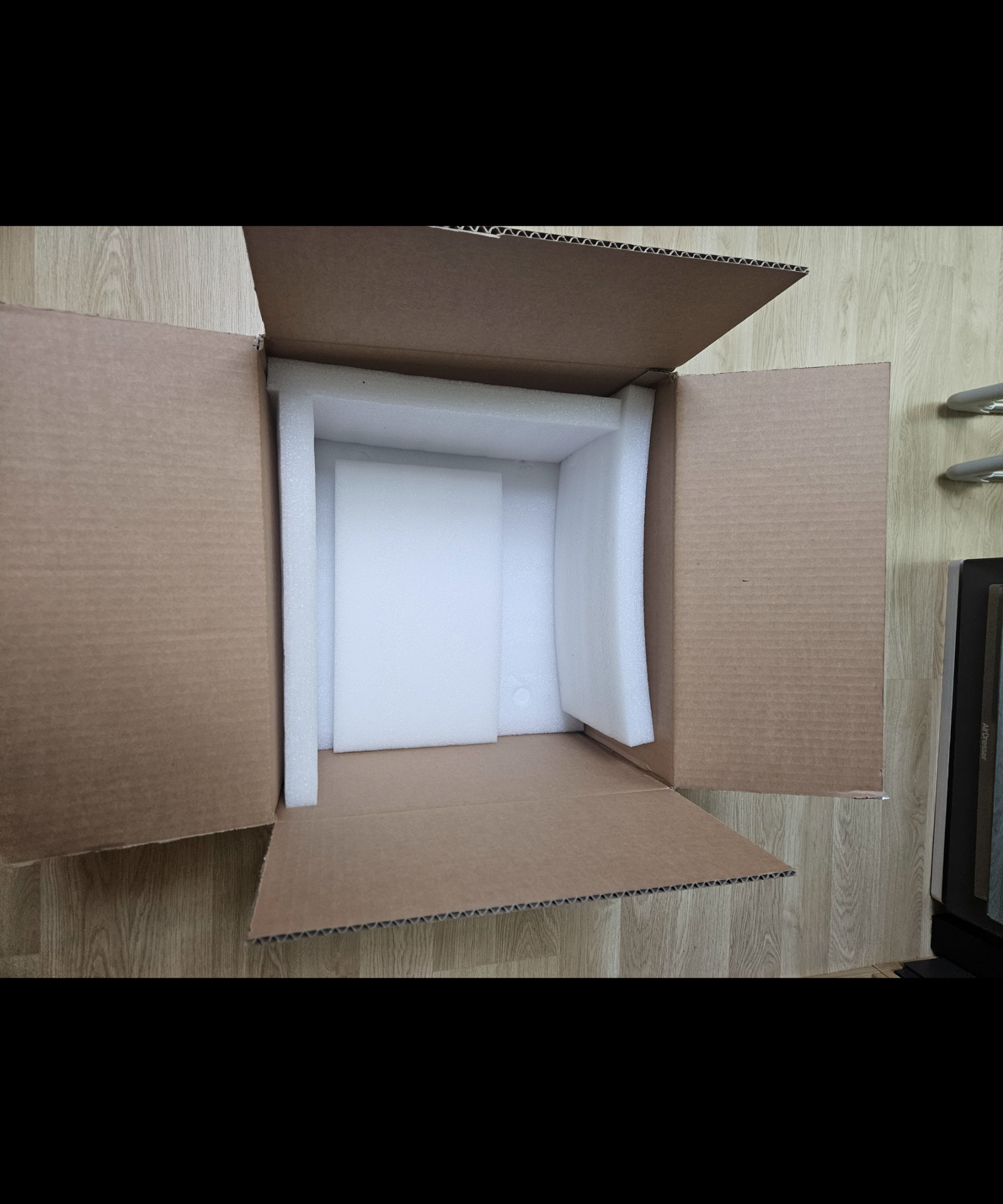 집에 도착한 택배 박스를 뜯어보는데 약간 떨리더라고요. "제발 정상적으로 작동해라!" 하면서 전원을 꽂아봤는데… 다행히 전원이 바로 들어왔어요!
