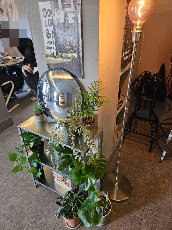 거울이나 조명같은 작은 소품 인테리어를 감각있게 잘 해두셔서 분위기가 힙해요. 감각있게 잘 꾸며두신편이에요.
