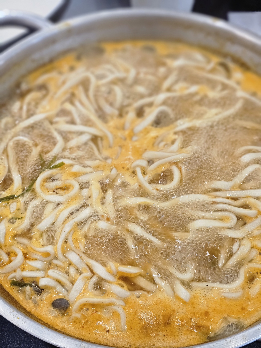 그리고 칼국수 면! 여긴 직접 반죽해서 뽑는다고 하더니 확실히 면이 쫄깃하더라고요. 일반 칼국수 면보다 약간 두툼해서 국물이 잘 배는 느낌이었어요.