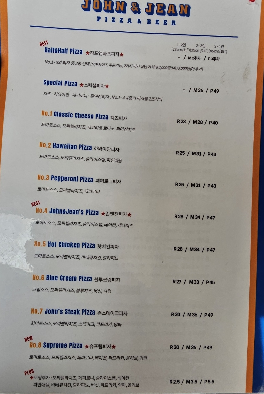 존앤진 피자펍에서는 다양한 피자 메뉴와 사이드 메뉴, 그리고 맥주를 함께 즐길 수 있습니다. 대표 메뉴들을 살펴볼까요?